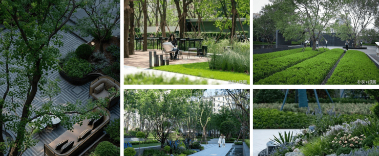 小区绿地率约35%,多重景观构成序列空间,多色彩,多乔木,多层次。让业主感受到春则繁华叶艳,夏则绿荫清香,秋则霜叶似火,冬则翠绿常延的植物景观。
