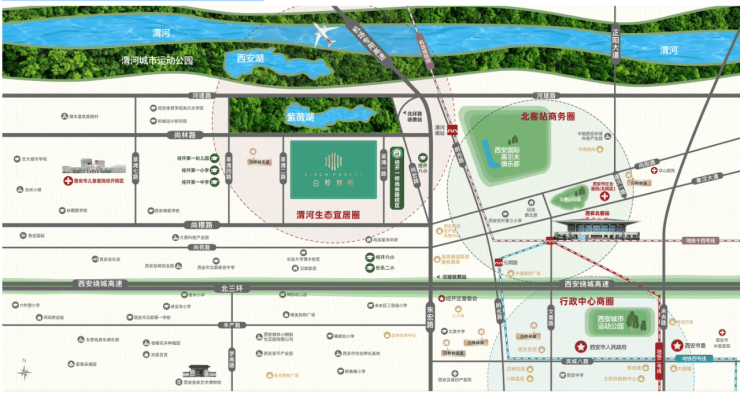 【交通】西安北站,汉城收费站,咸阳国际机场,绕城高速,机场高速地铁14号线,地铁4号线,地铁2号线
