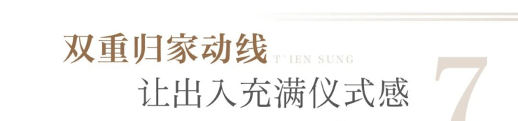 遵循东方传统归家礼序,尊享地上酒店式奢雅门庭、环岛式艺术水庭、分流式入户大堂三重礼序,赋予业主如酒店般的尊崇仪式感;地下流光星空顶入户大堂,无风雨归家,让往来尽享便捷奢适。