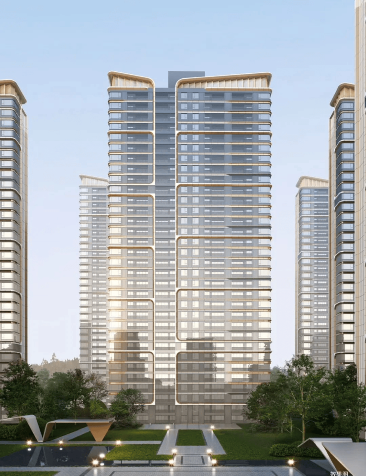 同频世界审美的现代公建化立面,平滑界面搭配香槟金曲线铝板,辅以顶部朱雀展翅之形态,构建高阶建筑艺术封面,宽幕阔境带来通透采光视野,为舒适人居革新。
