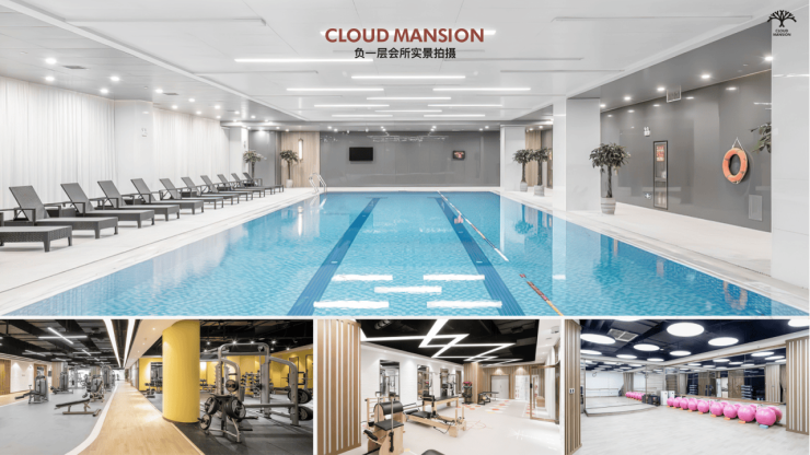 •负一层配备恒温泳池、洗衣房、洗车房、1500㎡的健身馆以及瑜伽房、普拉提、乒乓球、拳击房等各类健身场所和专业器械。