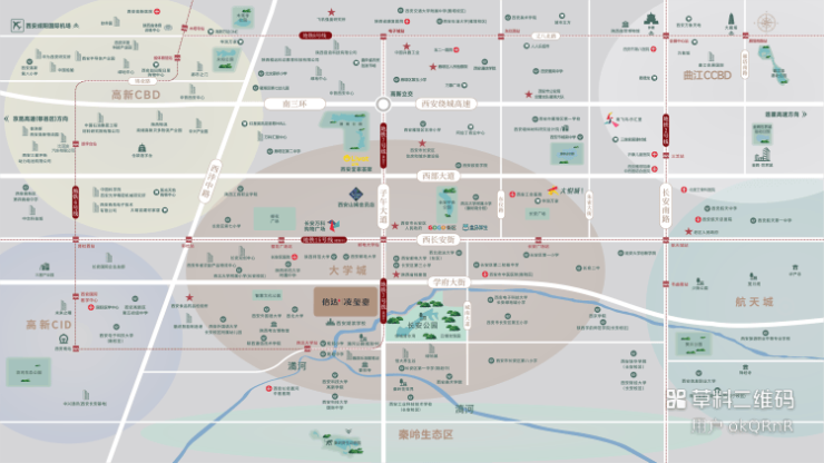 随着西安城市骨架不断拉大,长安区成为南拓发展的核心片区。2023年4月长安区发布《西安市长安区国土空间总体规划(2021-2035年)》草案,目标建成“国家中心城市协同创新高地·城乡深度融合发展典范城市”,依据城市定位构建起“国家公园体系示范区·西安现代农业示范区·科技创新发展核心区·人文生态品质先导区”。