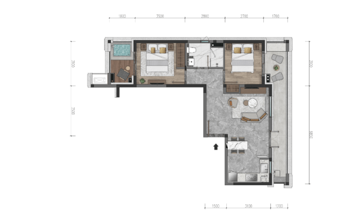 洋房户型效果图: