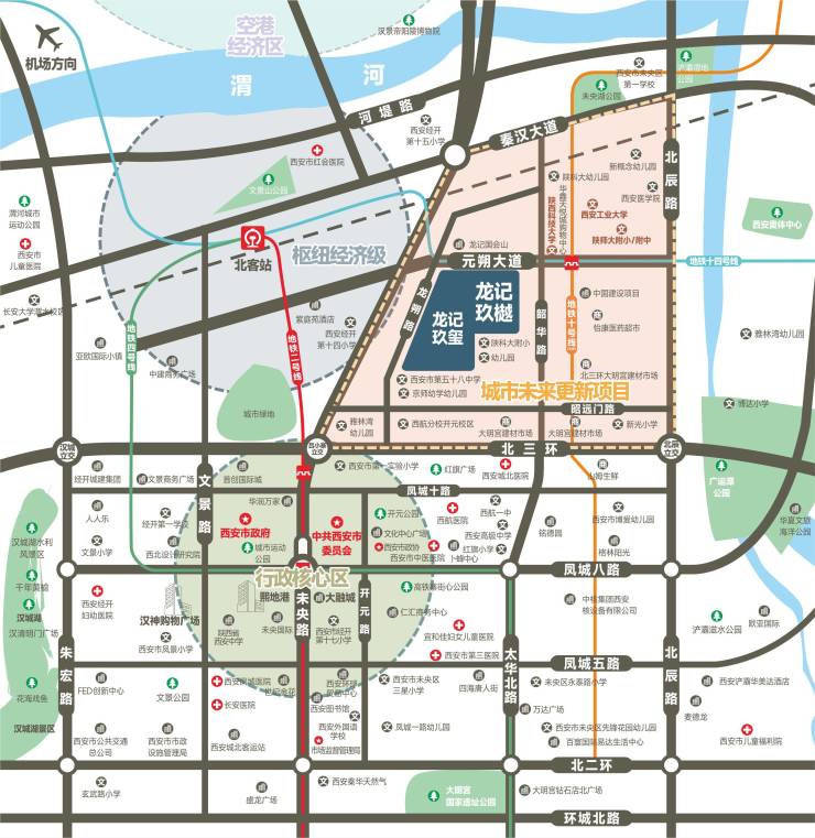 生态:区域内公园环绕,浐灞国家湿地公园,未央湖游乐园,渭河湿地公园,文景山公园,城市运动公园