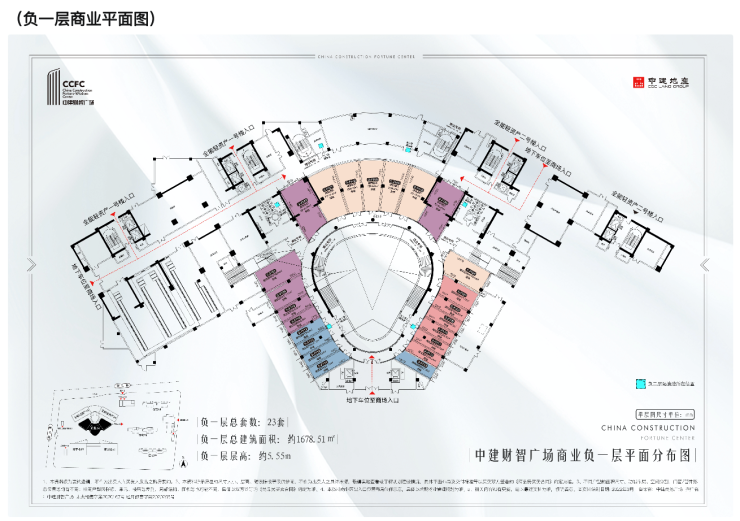 负一层总套数:23套负一层总建筑面积:约1678.51㎡负一层层高:约5.55m