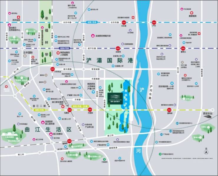 西京医院、唐都医院、西北妇女儿童医院、曲江新区医院(2024年底建成#投人便用),丰富医疗资源加持,营造舒心健康之享