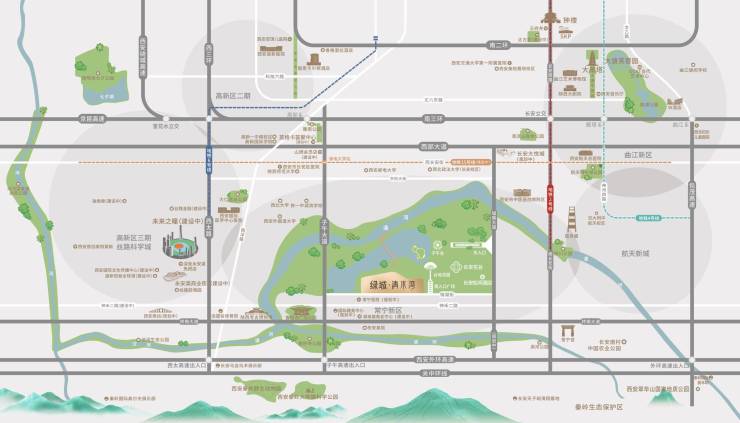 楼盘地址: 西安市常宁新区子午大道与锦湖街交汇处(长安公园内)