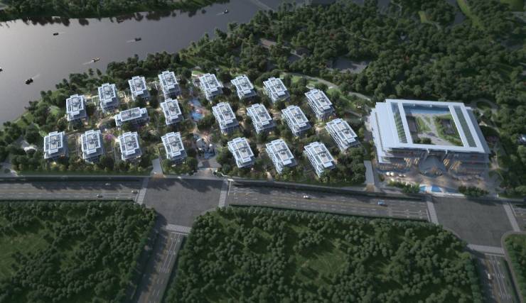 项目整体规划因地制宜,借助长安公园地块天然优势将建筑群落斜竖排布,依湖而建,营造四层低密大境