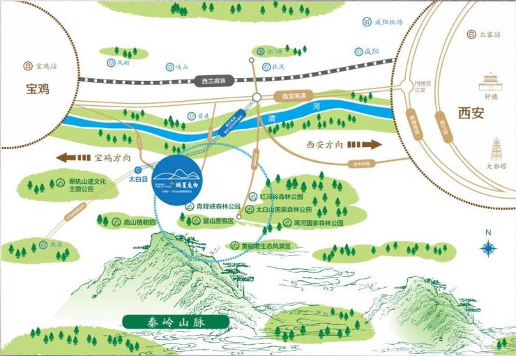 项目毗邻鳌山滑雪场、青峰峡、黄柏塬、药王谷等旅游胜地。地处大西安“三小时联动圈”内,2024年底,眉太高速即将建成通车,届时从西安主城到颐星太白仅约1.5小时车程,将成为名副其实的西安后花园。