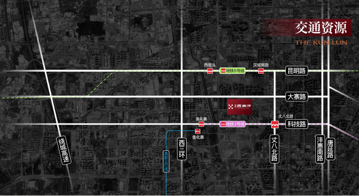 项目位于阿房路、大寨路交汇处,紧邻地铁3、5号线,多条城市主干道穿行,西安绕城高速通达全城