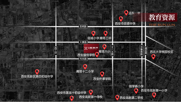 项目2.5公里范围内涵盖了雁塔三中、雁塔六小、西安藤信(小学到高中12年一站式三语国际教育)等10所院校