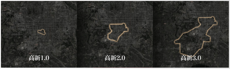 历经扩张,现以科技路、唐延路为核心轴,形成高新核心区,2023年GDP达3332.55亿元,同比增长8.1%。因产业密集、人口众多而居住环境受限,催生了大寨路中央生活区的发展。
