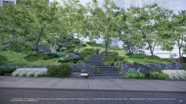 顺应地势高差,精心打造城市稀有的台地式景观园林,步步登高,风景相迎,构筑林间阶梯的自然礼序。