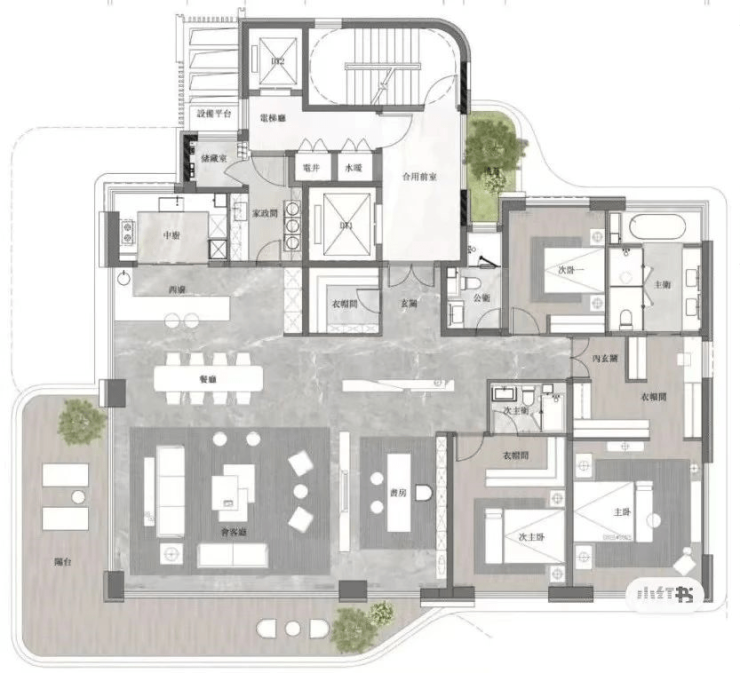 面积区间:301-370㎡(1梯1户、一层一户)