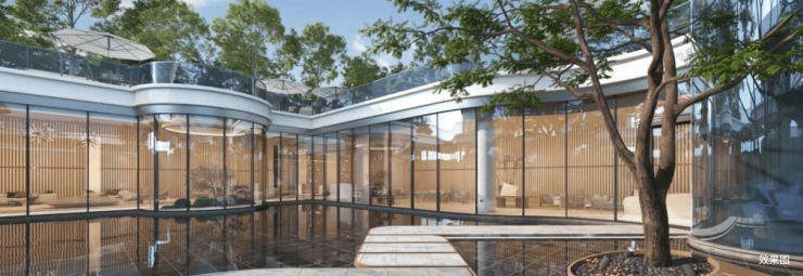 招商西安序每栋楼宇下设置总面积约2700㎡地下泛会所,围绕天幕采光区,涵盖司机休息室、私属健身区、多功能活动室等配套。