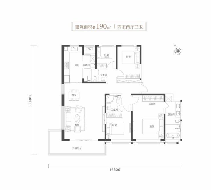 四室朝南|餐客一体|U型厨房|套间主卧|家政空间
