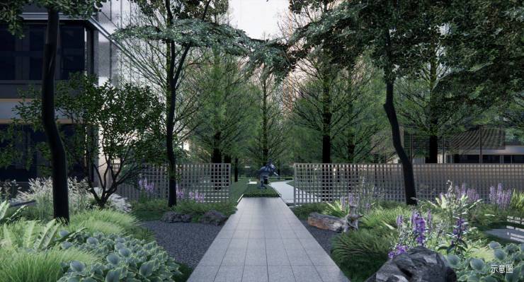 中海·开元壹号丨紫宸打造特色的雨水花园种植空间,结合艺术林荫,创造轻松的休闲氛围感,鸟语花香,苍翠覆盖,幽享亚马逊丛林般生活体验。