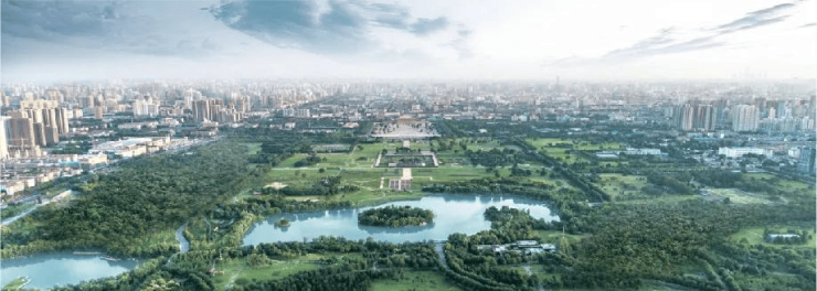 西安最大的城市中央公园5A级景区大明宫遗址公园,以及兴庆宫公园、环城公园,东元公园,长乐公园,以及幸福林带等