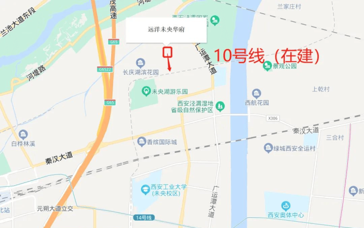 公园:坐拥世界水岸灞河、渭河两大水系;毗邻浐灞国家湿地公园、未央湖公园、渭河生态景观区、渭河生态公园、灞渭车游湿地公园。