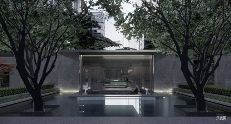 中海·开元壹号|紫宸园林架空层设置专属的会客休闲与阅读空间,室内室外视线相互渗透,空间延伸交织,联动形成优雅会客厅。
