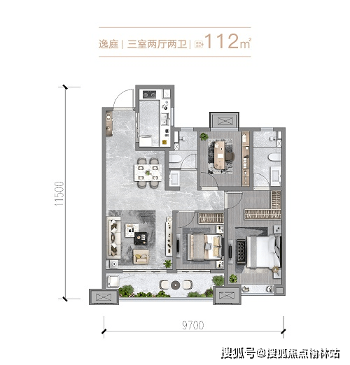 面积区间:建筑面积约70-143㎡健康品质舒居
