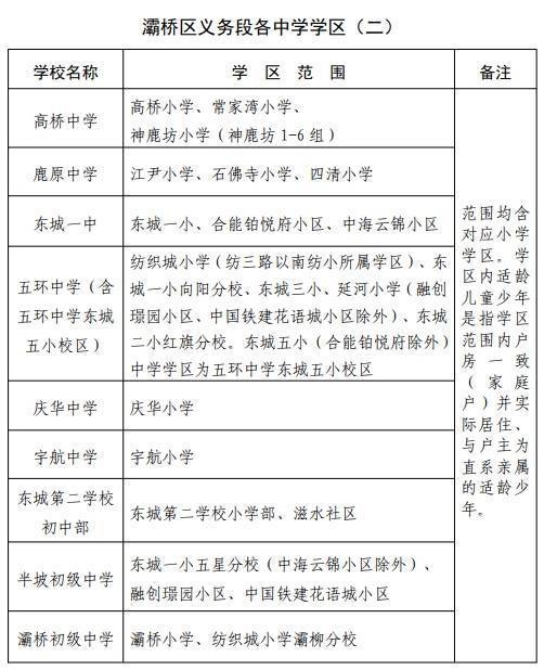 西安市(灞桥区)2024年义务教育学校学区划分方案