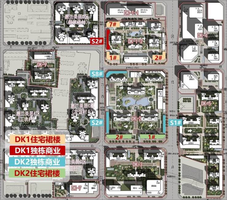 【推售商铺】1、住宅裙楼:DK1:1#、2#、9#楼一层;