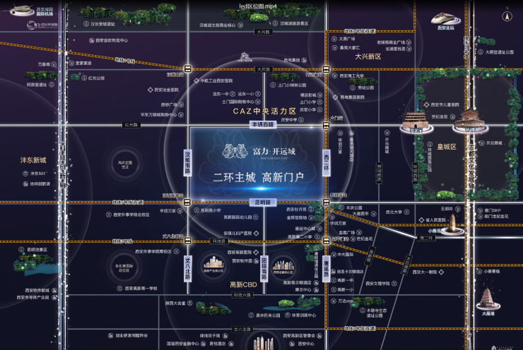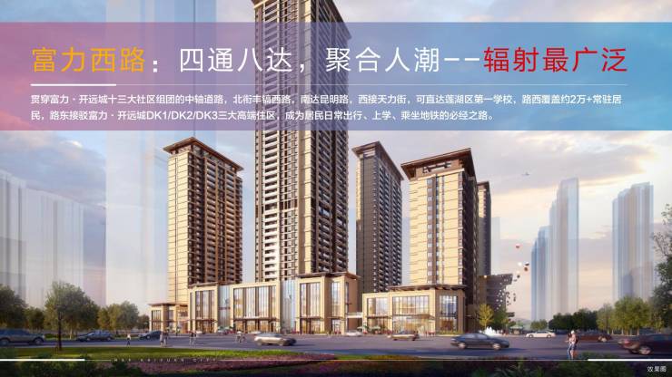 富力·开远城位于二环主城核心板块,毗邻高新一期,规划逾300万方城市综合体,涵盖205万方高端住宅,105万方全维商业,未来将成为板块核心商业中心,以超级规划虹吸高新等板块近百万人流消费,汇聚16万+稳定客源,打造国际都会城芯的生活核心圈
