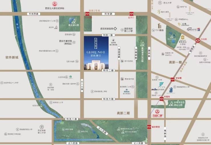 位于高新一期核心区,享高新第一小、中学,钱学森第二小学,西安北大新世纪学校,中大国际购物中心,高新医院等配套。