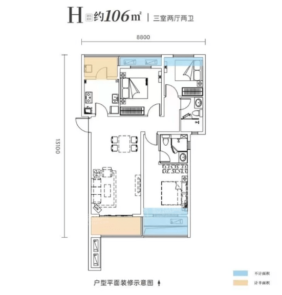 物业管理费:高层1.5元/㎡·月;洋房1.8元/㎡·月