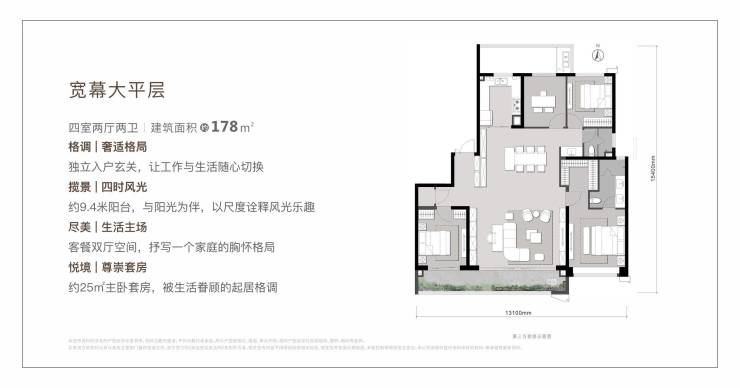 面积区间:规划约128-178㎡宽幕大平层 、约143-235㎡空中庭院洋房