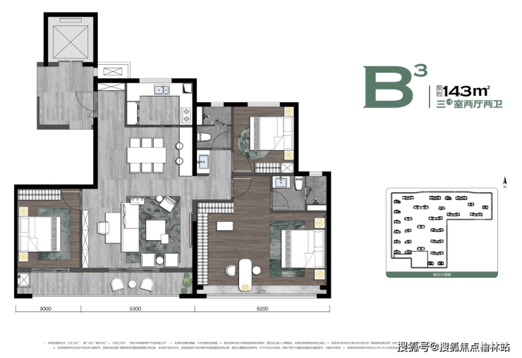 【B3户型】建面约143㎡三室两厅两卫