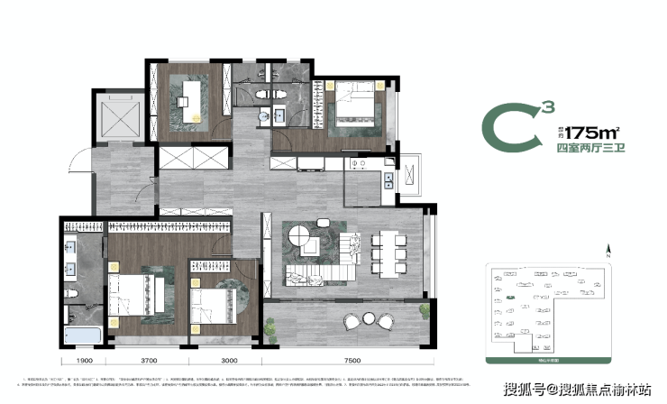 【C3户型】 建面约175㎡四室两厅三卫