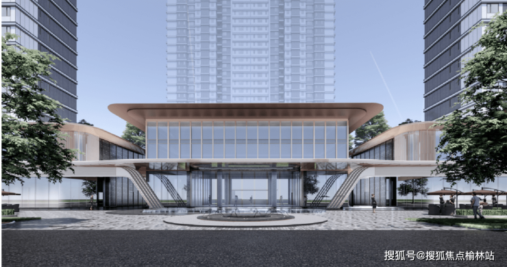 >现代化立面:采用“流光”主题,运用大面积玻璃+定制香槟色+银白色铝板+涂料,打造现代化立面