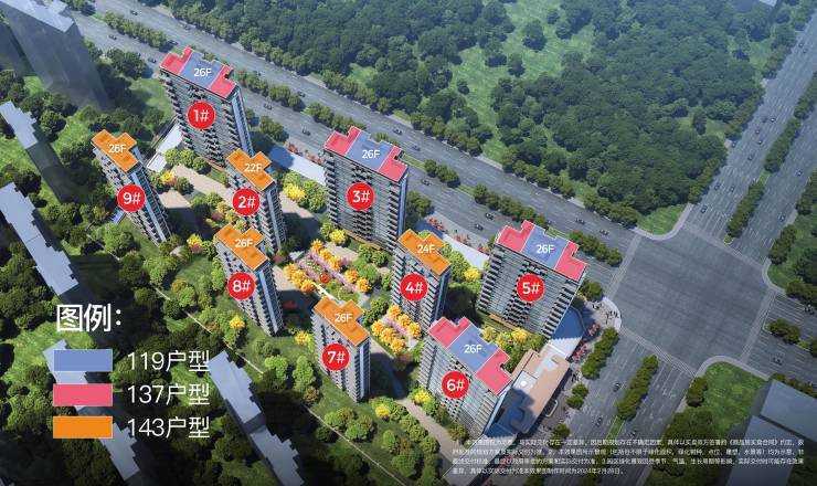 本次预计推售楼栋:4-5-6-7#,建面约119-137-143㎡
