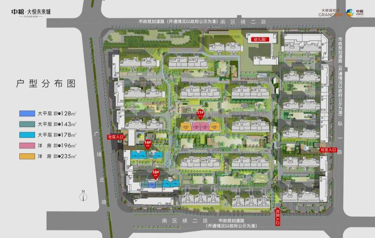 面积区间:规划约128-178㎡宽幕大平层 、约143-235㎡空中庭院洋房