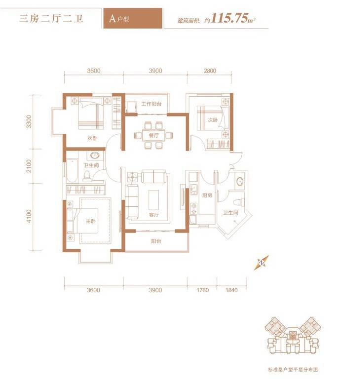 115平三室两厅两卫