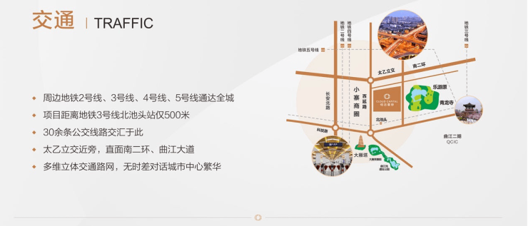 【交 通】区域纵线由西向东分别由长安北路、西延路、东二环、经九路组成,其中长安北路作为城市中轴道路,贯穿城市核心;横线由北向南依次是南二环、西影路、南三环,其中位于项目北侧的南二环通达全城,而项目南侧的西影路接驳城东、城南,大大节省出行时间。项目距离地铁3号线北池头站直线距离仅500米,4号线后村站就位于项目西侧、5号线太乙路站距离项目仅800米。环绕本项目周边站点有北侧的青龙路、经九路站,项目西侧直线距离约300米的乐游原公交站,距项目东侧800铁一中公交站点,数十条公交线路交汇。
