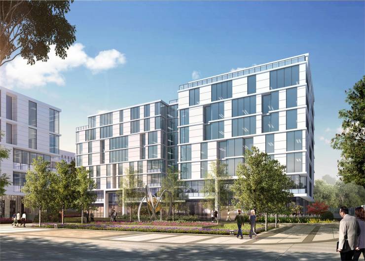 8.外立面采用石材+玻璃幕墙,大面积落地窗设计采光充足,办公环境更为舒适;