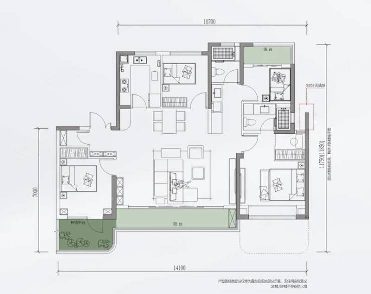 4室2厅2卫1厨, 143平米