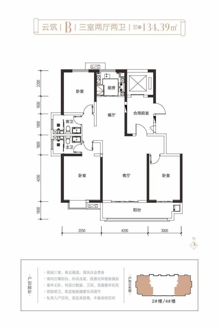 面积区间:104-134㎡(两室、三室),2梯2户