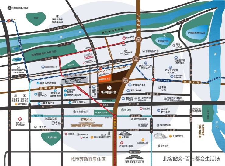交通路网:北三环、绕城高速、机场高速、元朔大道等城市主要交通路网无缝对接本项目