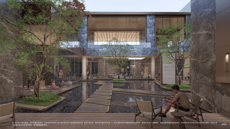 围绕下沉景观庭院打造邻里专属空间,涵盖健身房、瑜伽&舞蹈室、书院、会客厅、休闲室、儿童中心等功能空间,盛纳多元、丰富、私密的社区生活。