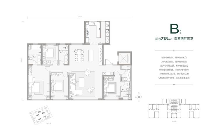 在售户型:建面约176-218㎡奢舒四居