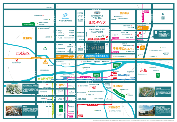 嘉园蓝湖九郡项目位于泾渭新城西高路与泾渭阳路交界处,地处西安市泾渭新城、兵器产业基地、兵器保障园配套区、崇皇中央商务区四区核心,位于园区两大干轴渭阳路与西高路交汇处。