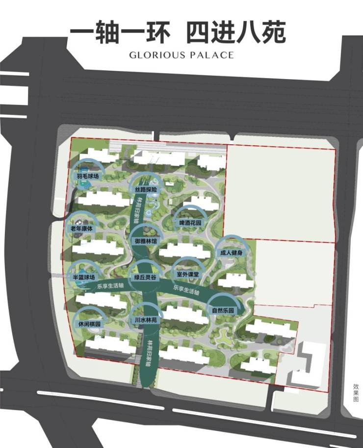 师法皇家园囿 重绘贵族自然生活汉武帝时的皇家园囿“上林苑”,以五维园林造园,打造“一轴一环四进八苑”的雅致轴线,以游园意境打造精致意趣园林,呈现全龄乐活的生活主场。