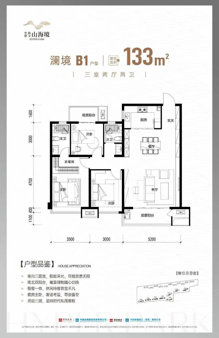 主力户型:110㎡、133㎡和143㎡;