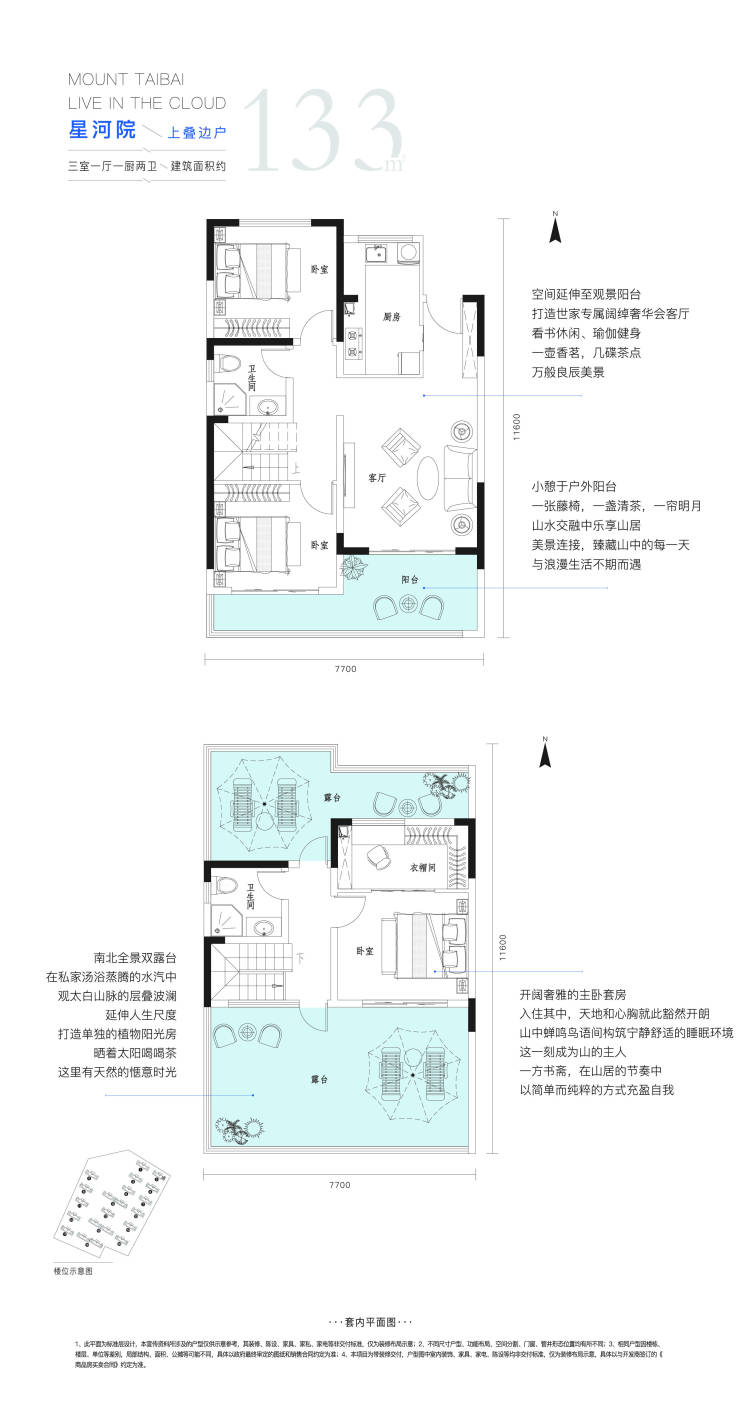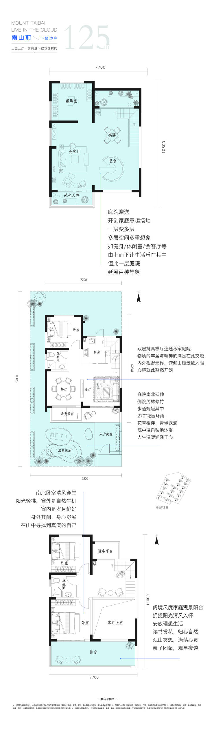 奢阔赠送:太白山同级别产品赠送庭院、地下室,底跃露台面积最大。50平米~220平米