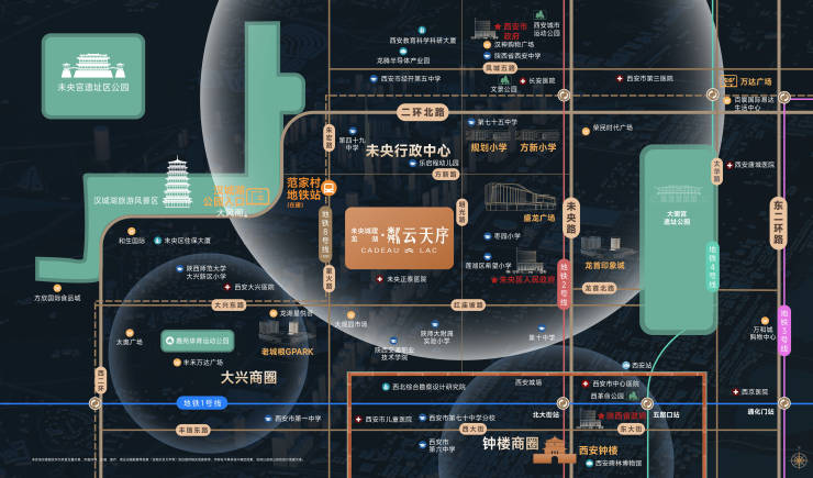 约600米即达西安唯一环线地铁8号线范家村站(在建),近靠锦宏路城市交通线网的重要骨干线路,立体交通无缝接驳全城,从容应对都市生活。