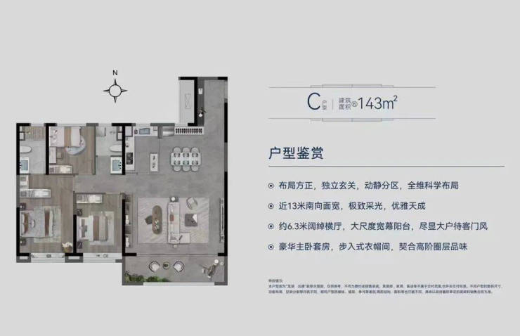 龙湖云璟规划了约108-195㎡面积段,目前在售建面约116㎡、143㎡三房产品,所有户型三开间朝南,最大面宽达13米,户型设计来看,不管是空间格局,还是功能的实用性,极大保障了居住采光通透和居住的舒适度。